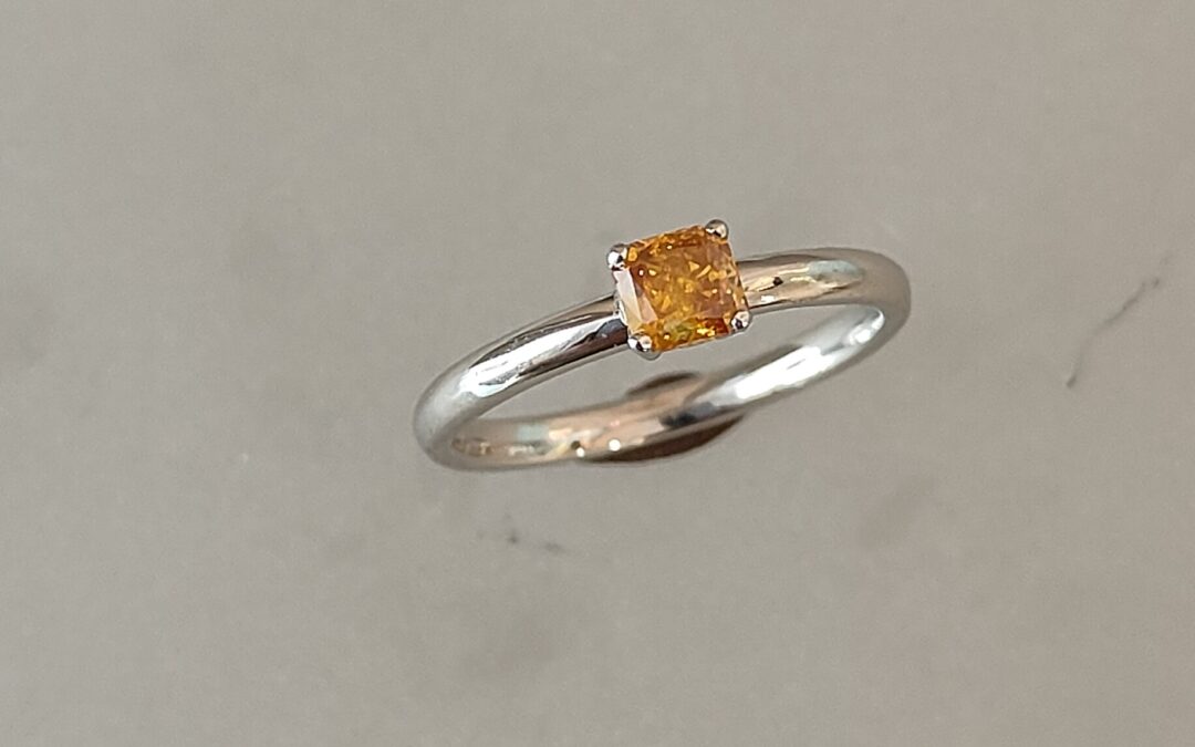 Ring in Platin 950 von admin | Sep. 18, 2025 | Uncategorized Intense Orange Diamant Preis: CHF 2100.- MaterialPlatin 950SteinDiamantFarbeIntense OrangeKarat0.41ReinheitI1